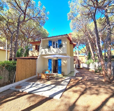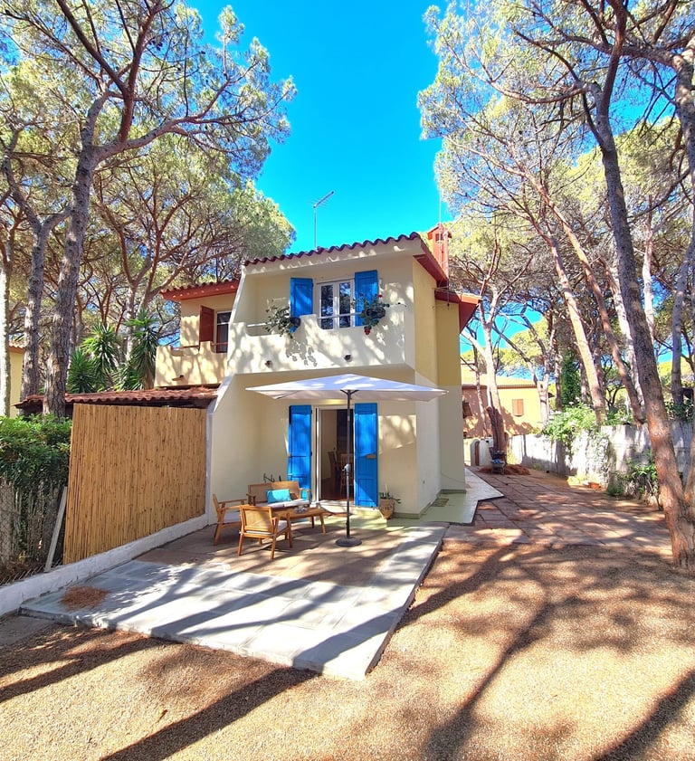 Dvoupatrový apartmán se zahradou, 150 metrů od moře, v piniovém háji v Santa Margherita di Pula