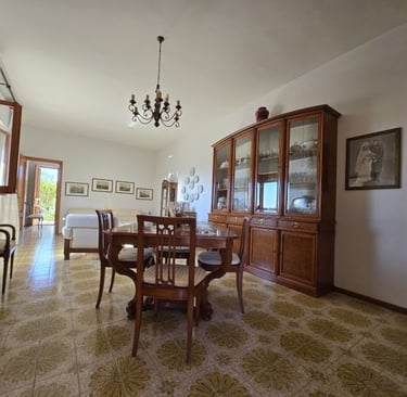 Prostorný byt o rozloze 200 m² rozdělený do dvou podlaží, nabízený s originálním dobovým nábytkem. S několika cílenými rekonstrukčními úpravami lze tuto nemovitost proměnit v kouzelný rekreační dům, pouhých 10 minut jízdy od proslulé pláže Porto Pino. Vysoký potenciál pro krátkodobé pronájmy.
