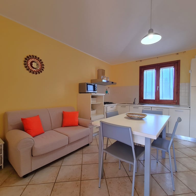 Tento útulný apartmán v prvním patře, nacházející se v klidné rezidenční oblasti, je ideální pro ty, kteří hledají rekreační bydlení jen několik minut autem od slavné pláže Porto Pino.